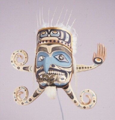 Materials     Wood, Paint, Cedar Bark, Feather, Brass, Cowrie Shell, Abalone, Horsehair